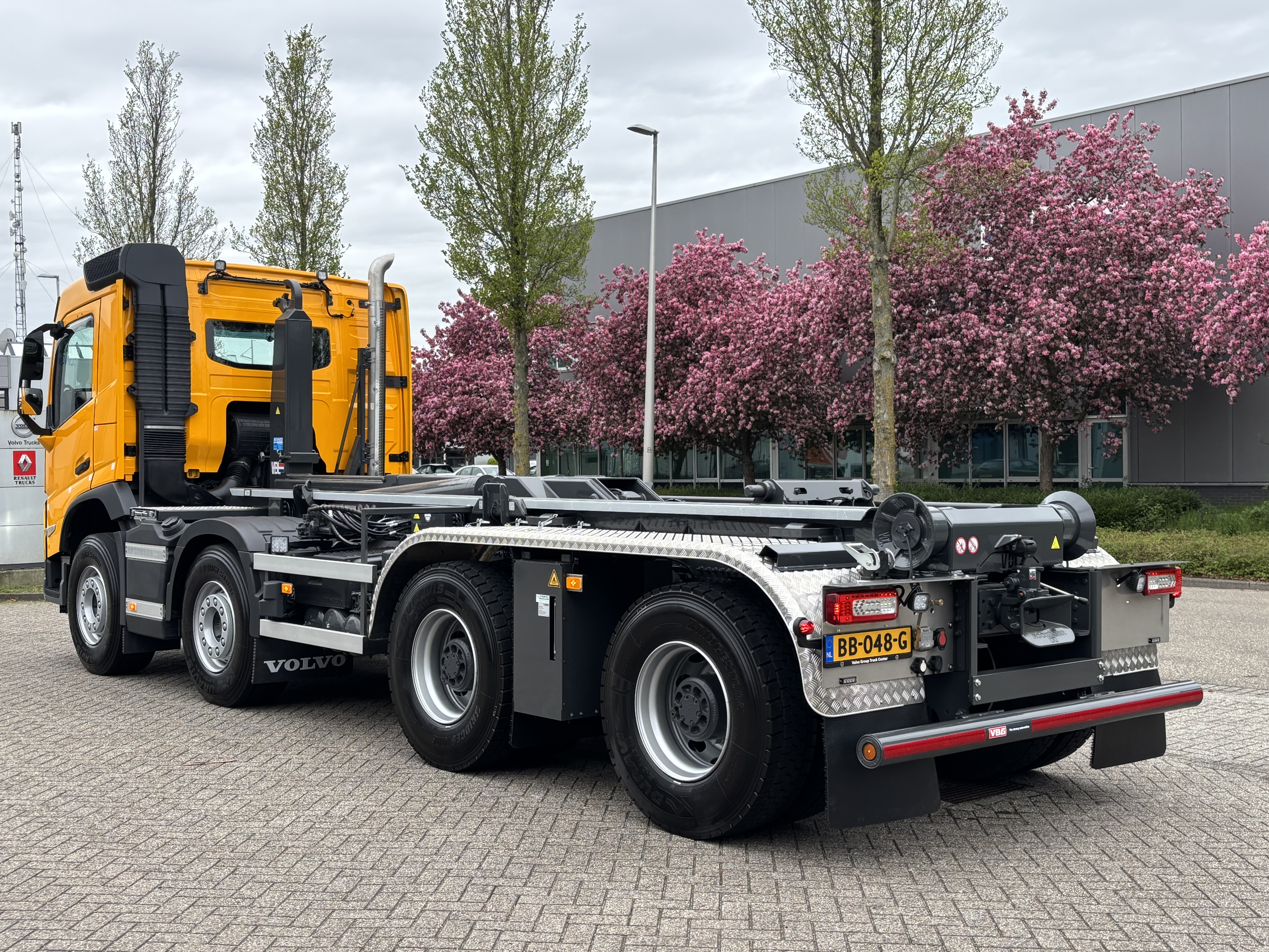 The vehicle is fitted with a VDL 30-tonne hooklift installation, mounted by Bevako. In addition, a gearbox has been fitted in the chassis so that the hydarulic pump for the hooklift system operates clutch-independent, the hooklift system can now be operated from a moving vehicle.